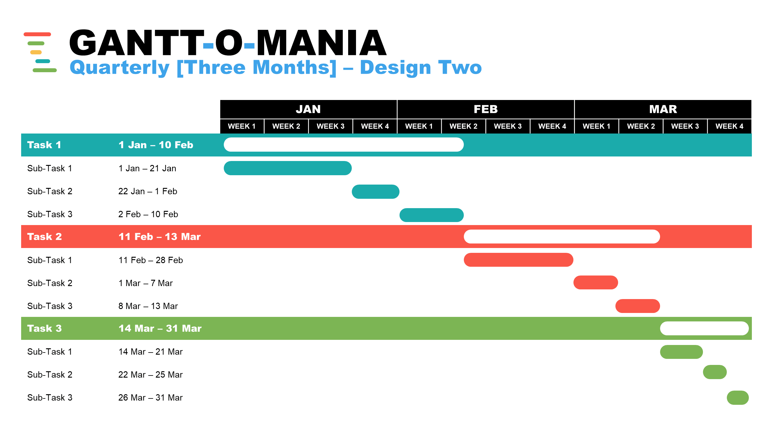 So, if you're tired of making boring Gantt charts in PowerPoint and need something that is readily available, beautiful, and stupidly easy to edit, then Gantt-O-Mania may just be worth your while.